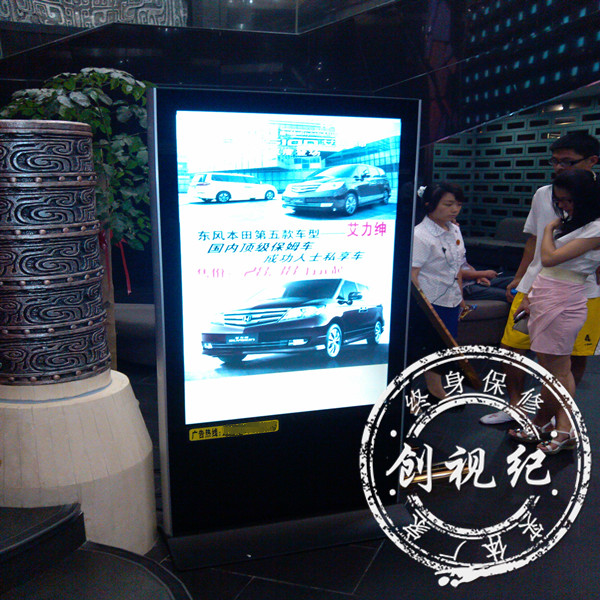 目前4S店基本都是通過產品宣傳折頁、易拉寶、櫥窗海報、燈箱等傳統的媒體進行被動信息宣傳,并且顯得零亂無序。創視紀出的電子海報機可以更加清晰、更加醒目、更加規范和更加有效地展示汽車產品在顧客面前。通過網絡可以可以遠程、即時發布廣告信息,使所有的顯示終端形成一個強大的信息發布平臺。