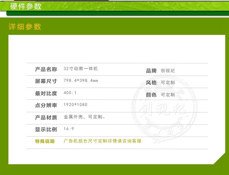 產品名稱:32寸幼教一體機 品牌: 創視紀