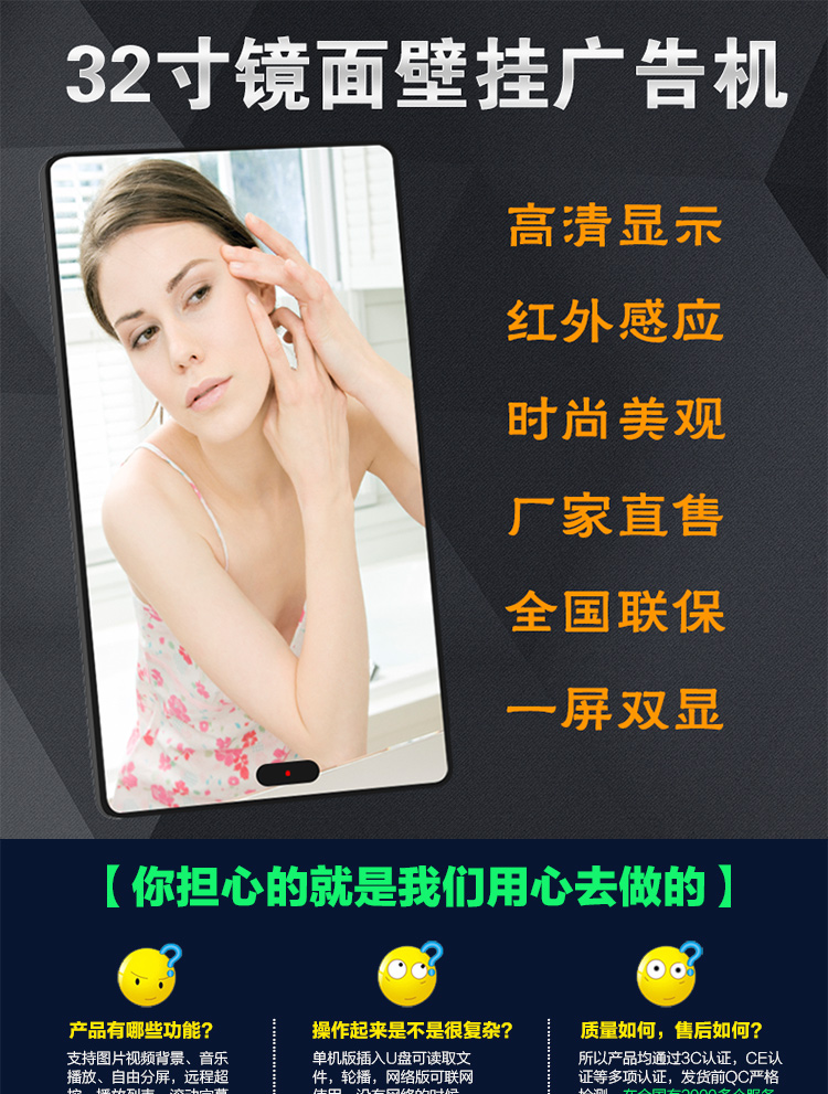 43寸壁掛式魔鏡廣告機 洗手間專用多媒體顯示屏