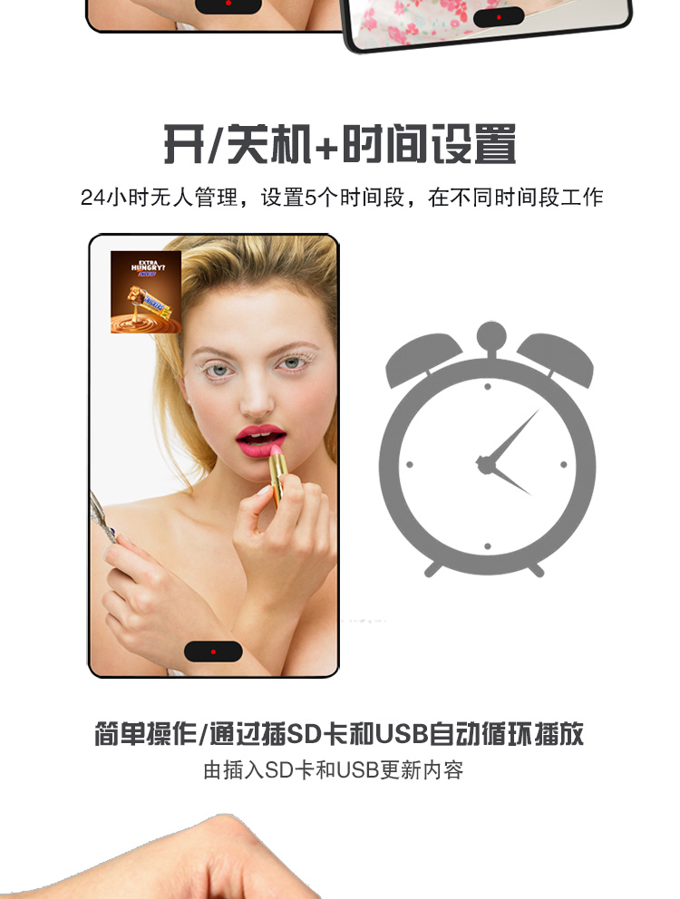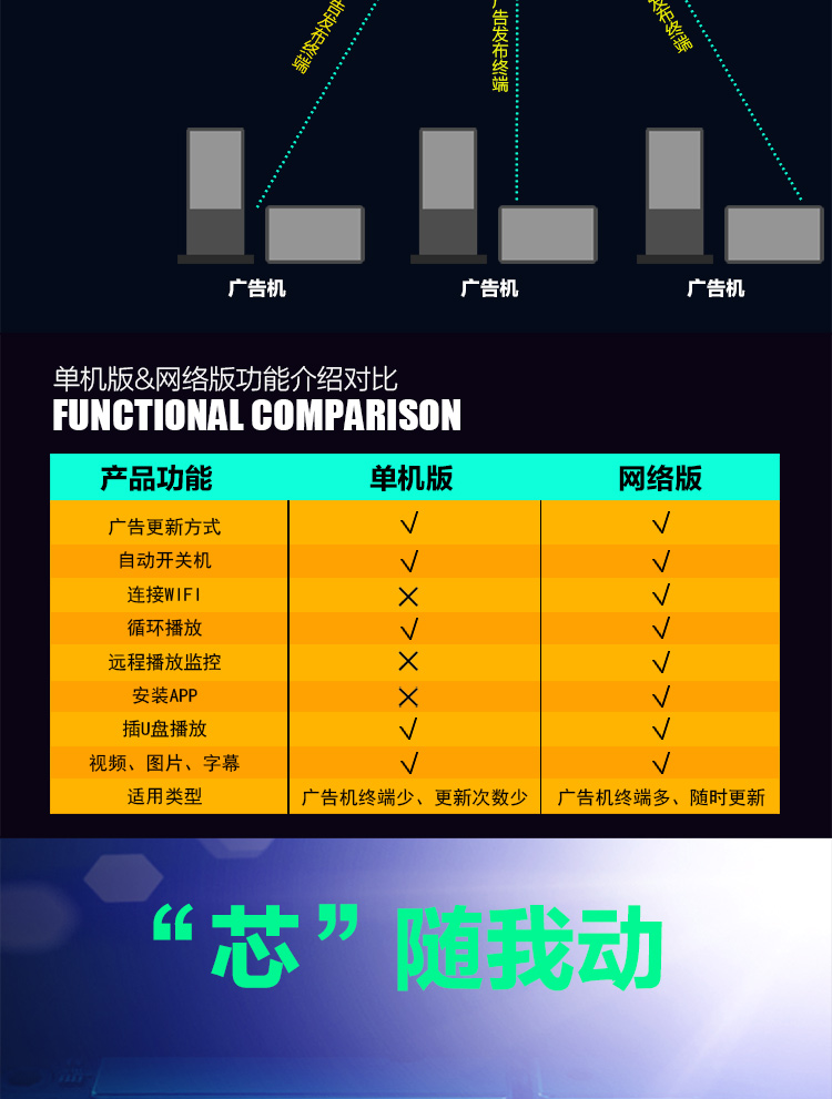 6、分屏功能:可以將圖片+視頻+滾動字幕同時多畫面顯示,這樣獨特的顯示給廣告運營商帶來更多商機,可實現多家媒體的廣告同時播放。