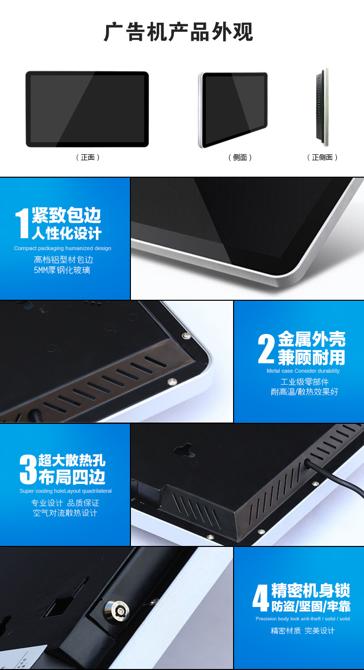 產品名稱: 32/43/49/55/65英寸壁掛樓宇廣告機