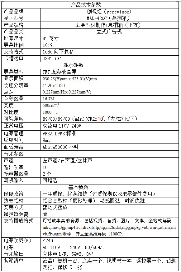 42寸亮度       500cd//㎡