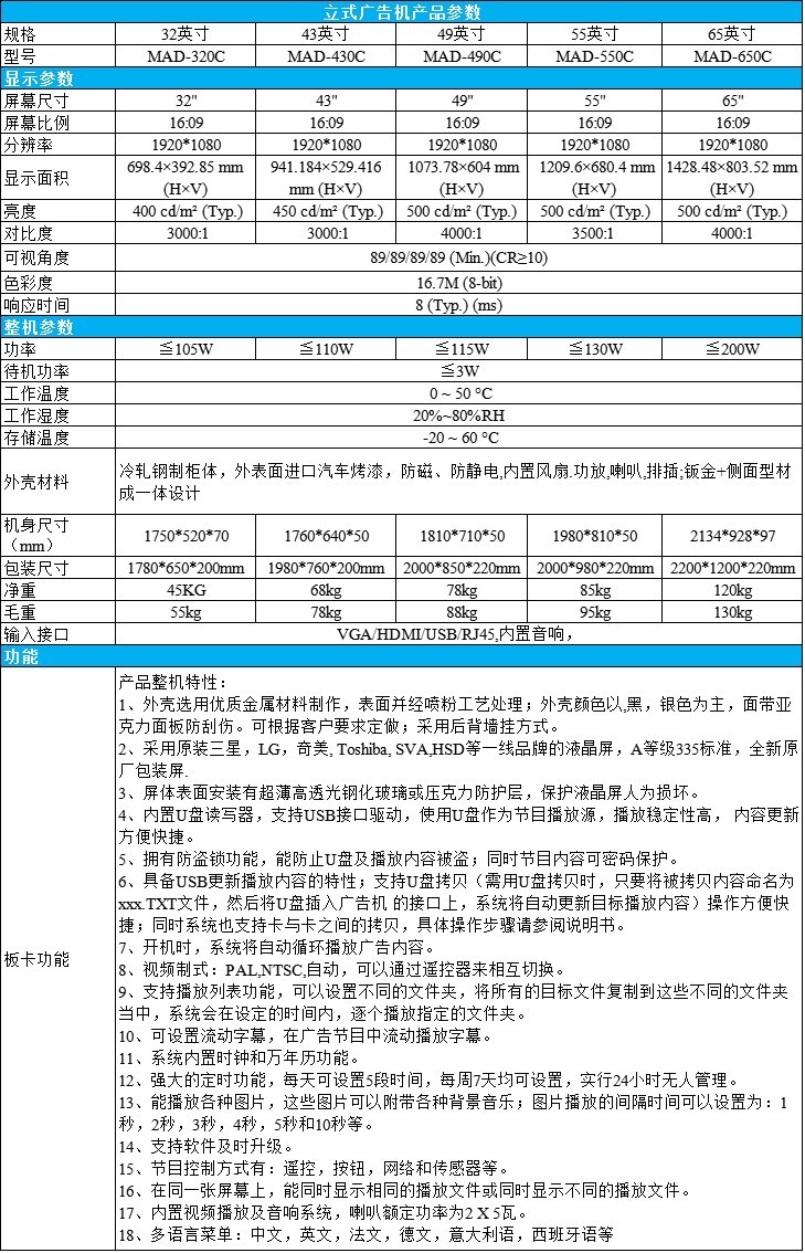 49/55/65英寸落地式廣告機