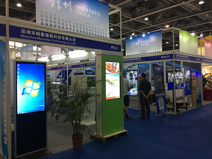 深圳市梅塞德斯科技有限公司此次所帶展品眾多,有戶外防水廣告機,3D全息投影柜,3D透明廣告機,觸摸查詢一體機,等等