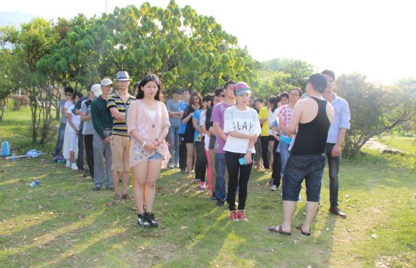 烈日炎炎下,各位梅塞德斯科技的家人們緊緊圍成一個圈坐在草地上,認真的聽李總解說游戲規則;