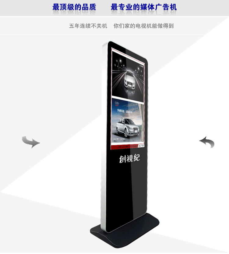 你知道第五大媒體形式是哪一種嗎?有人說繼紙媒、廣播、電視、互聯(lián)網(wǎng)后,數(shù)字標(biāo)牌被認(rèn)為是第五大媒體形式,而剛剛到來的2015更被認(rèn)為是數(shù)字標(biāo)牌元年。近幾年來,創(chuàng)視紀(jì)數(shù)字標(biāo)牌得到迅速發(fā)展,從最初的展示信息,到單機(jī)廣告機(jī)、聯(lián)網(wǎng)化的廣告機(jī)再到人機(jī)交互系統(tǒng),創(chuàng)視紀(jì)數(shù)數(shù)字標(biāo)牌在互聯(lián)網(wǎng)化、數(shù)字化的時(shí)代得到迅速發(fā)展,并由于其自身的特性得到市場(chǎng)的肯定已經(jīng)受眾的歡迎。