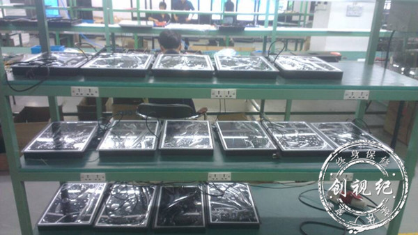 2015年6月17號,深圳,晴。早晨7點已經驕陽似火,深圳梅塞德斯科技有限公司----創視紀廣告機生產廠家,生產部已經熱火朝天,為了趕制這100臺高亮開框廣告機,生產車間的兄弟們已經各就各位,盡然有序。此批19寸高亮1000亮度的開框廣告機,是準備發往浙江,用于其他機器的配套設備,開框廣告機也可叫無框廣告機,無框顯示器,嵌入式安裝廣告機,也可加裝觸摸屏等,此類廣告機主要用于廣告展覽展廳展示用,或者需要嵌入式安裝的用途,有需要的可前來訂購!