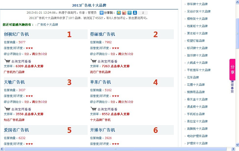 恭喜“創視紀”廣告機榮登2013年廣告機十大品牌之首