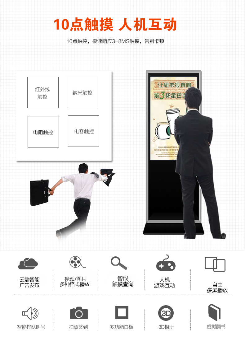 其四,注意技能的養護。電子產品是需要養護的,對于這一點可智路人皆知,但是知道電子產品要養護就一定能把養護這一工作做好,電子產品的養護也是有一定的規律和技巧,電子設備經常性會出現靜電現象,廣告機毫不例外。靜電會讓空氣中飛揚的塵埃附著在廣告機屏體和屏幕上,這時候掌握一定養護技能顯得十分重要。整理時不可使用濕布,濕潤物擦拭屏幕不僅效果欠佳,更易引發電路濕潤或短路現象,所以廣告機養護要講究技巧的。